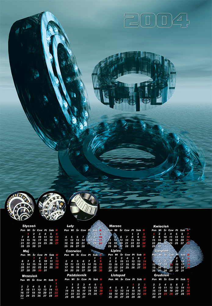 Projekt kalendarza dla firmy zajmującej się produkcją łożysk.